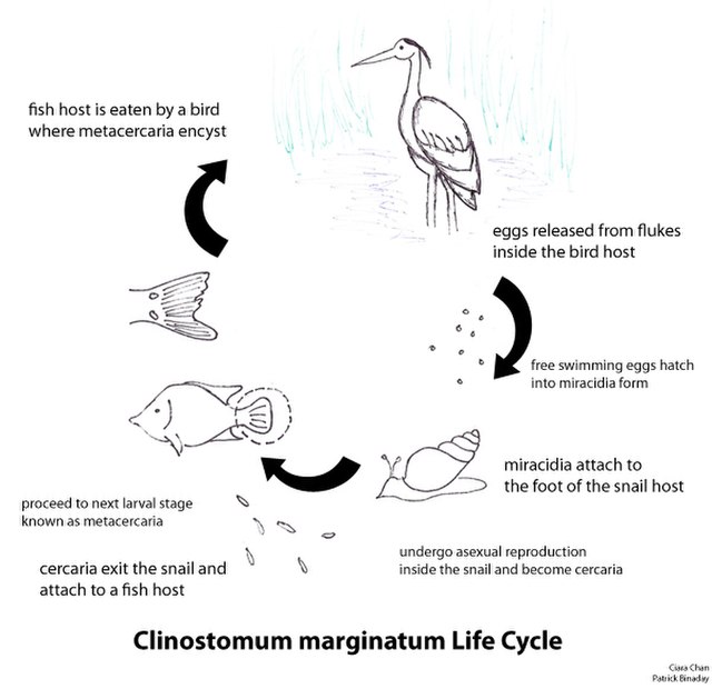 The digenetic trematodes have some of the most complicated life histories in the animal kingdom. Digenetic trematode life cycles are “indirect” or “complex”, meaning that more than one host species is required to complete the life cycle. All species have asexually and sexually reproducing life states and a minimum of two hosts: a first intermediate host and a definitive host. Many taxa incorporate a second or third intermediate host as well. Although this may, at first, seem confusing, there are really two basic variations to the theme as follows:
